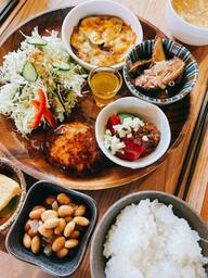 おこめ農家の玄米と野菜を使った食堂です。自家栽培有機米の酵素玄米ご飯とそのお米の糀を使った調味料でおかずを作っています。玄米粉のおやつも作っています。なるべく身体に負担の少ない食事を目指しています。