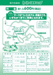 「わくわく温泉チケット」は、湯の山温泉郷にある7つの宿泊施設のうち、いずれか1施設で利用できる日帰り入浴券です。料金は1枚600円(税込み)と気軽に名湯を楽しめる価格となっています。