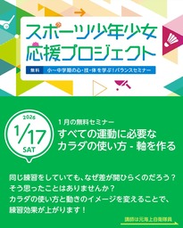 「スポーツ少年少女応援プロジェクト」とは、心身ともに大きく成長する男女の小・中学生の時期に、将来の競技生活や健やかな人生の土台を築くことを目的とし、アスリートとしての基本的な生活習慣・自己管理・心のケア・身体づくりを体系的に学ぶ、継続型セミナーです。