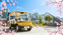 車両は時速20キロに満たない低速で走行し、窓や扉がない開放感が特徴です。車体は福井県を代表するコンテンツ“恐竜”をイメージしており、非常に注目を集めるデザインとなっています。本車両で県都のまちなみや桜スポットを、風を感じながら巡る特別な観光体験を提供します。